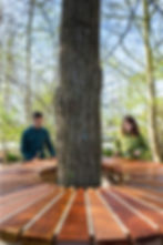 The staves are forming a circle shape which can be installed around a tree. It allows the musician who plays on it to play in an endless phase, walking in circles while creating sound. The staves are tuned in a melody. The tree also participates in the composition, by dropping branches or oaks. In this way Annabel created a way to perform with the tree.